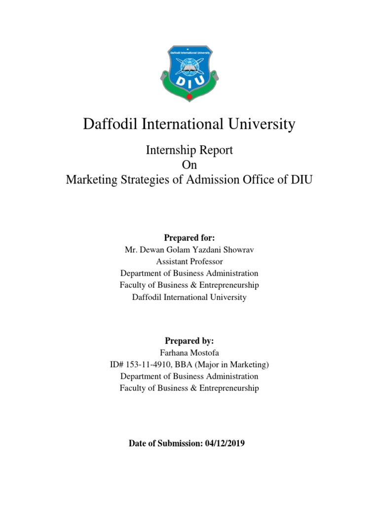 Daffodil International University DIU is a recognized private university in BangladeshDaffodil International University came into being on 24th January 2002 the University today combines impressive modern facilities and a dynamic approach to teaching and research with its proud heritage of service and achievement. Daffodil International University DIU is a recognized private university in BangladeshDaffodil International University came into being on 24th January 2002 the University today combines impressive modern facilities and a dynamic approach to teaching and research with its proud heritage of service and achievement. Professional Essay Help If you want professional essay help for your university essays Daffodil University Assignment Cover Page Doc Application make sure that you knock the door of TFTH only.